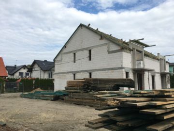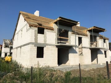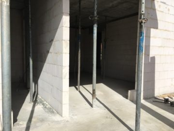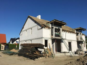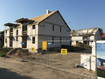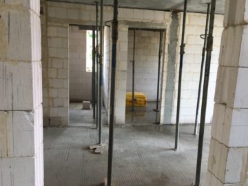 Zakończono murowanie ścian konstrukcyjnych i ścian działowych w budynku nr 1. Trwają prace nad ścianami działowymi w budynku nr 2.